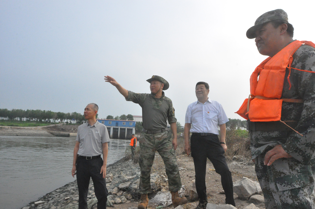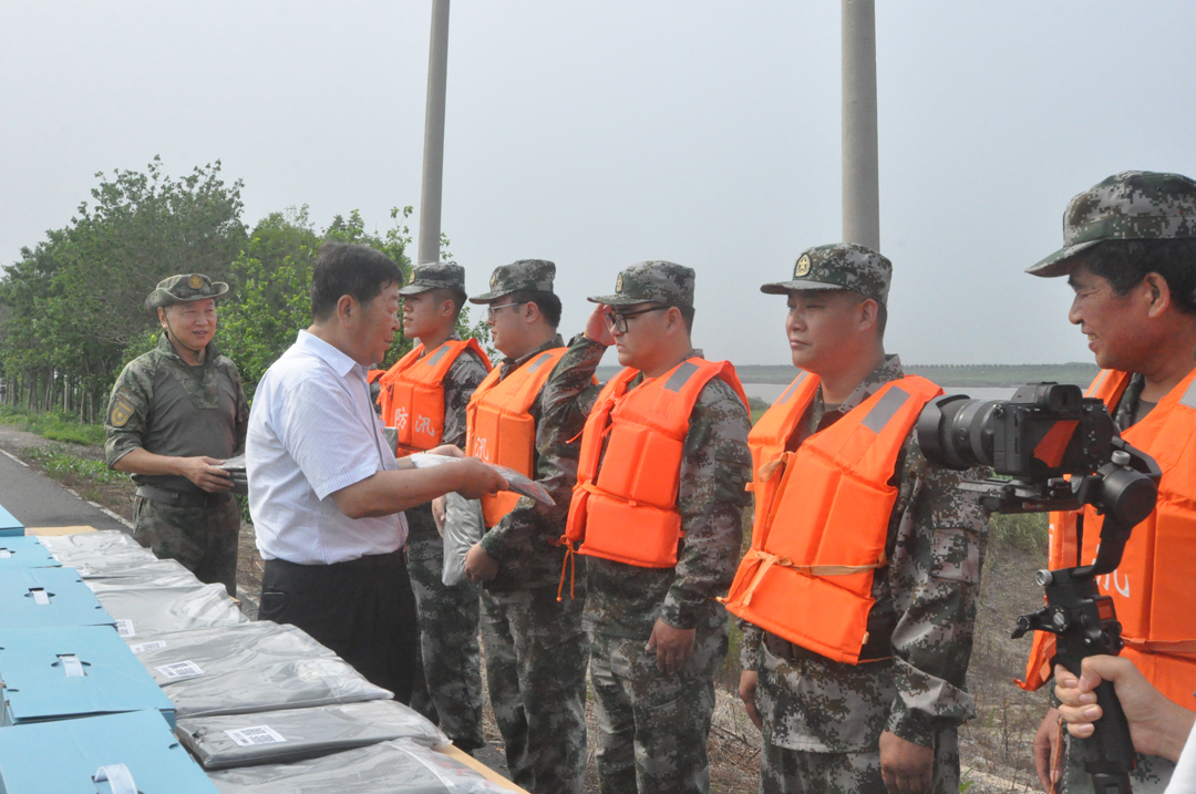 崔洪金現場(chǎng)了解民兵生活、排險情況,向堅守河堤的民兵表示崇高敬意,并為民兵送上夏季訓練服裝和防暑降溫慰問(wèn)品,對他們發(fā)揚“聞‘汛’而動(dòng)、聽(tīng)令而行、勇于奉獻”的精神高度贊揚。