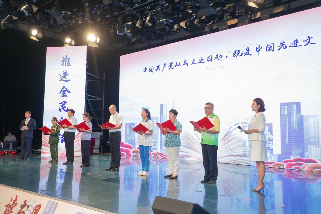 活動(dòng)由創(chuàng )意節目《千里江山圖》拉開(kāi)序幕,通過(guò)“奮進(jìn)·天津”“鄉土·天津”“科普·天津 ”“人文·天津”四個(gè)篇章,呈現書(shū)香天津·全民閱讀成果。在“奮進(jìn)·天津”篇章中,2023年被授予“全國十大最美擁軍人物”的崔洪金董事長(cháng)與其他嘉賓一起分別講述了自己關(guān)于閱讀的理解。