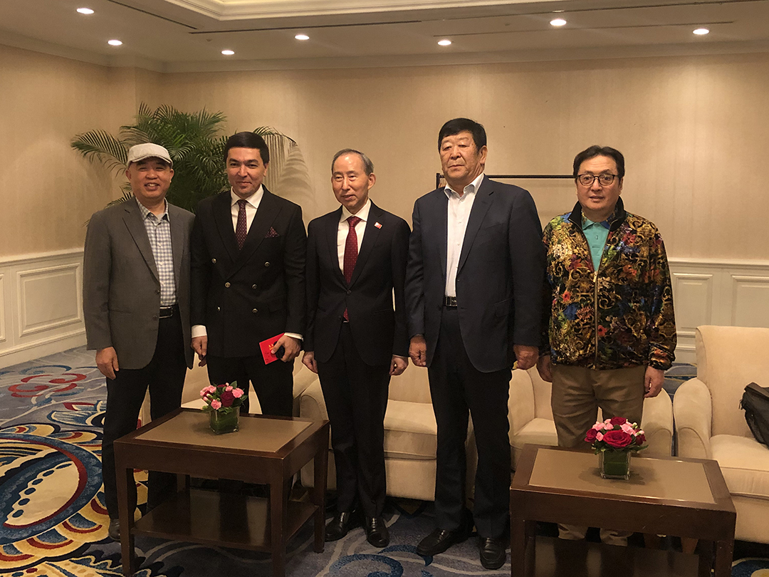 崔洪金董事長(cháng)與國際文化傳播中心執行主席龍宇翔等人合影
