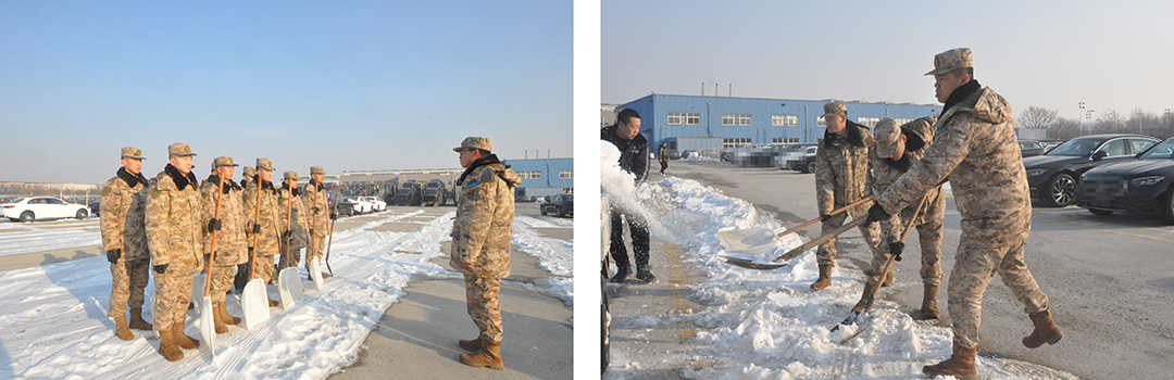 2023年第一場(chǎng)大雪后,寒風(fēng)凜冽,風(fēng)雪無(wú)情,路面積雪嚴重影響著(zhù)的出行,特別是安達物流院內,天氣寒冷,再加上積雪路面因車(chē)輛的反復駛過(guò)已造成積雪成冰,雖然物流工作人員經(jīng)過(guò)一周的清理,但還是有一大部分路面未完全清理干凈。天氣寒冷卻阻礙不了軍民共建的愛(ài)心,駐區93688部隊52分隊作為安達集團的雙擁共建單位,了解到安達物流因積雪造成的作業(yè)困難、安全無(wú)保障的困境,立馬提出主動(dòng)幫助物流公司清理院內積雪。