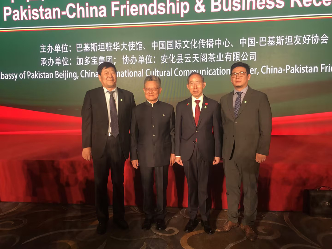 202466日,由巴基斯坦駐華使館、中國國際文化傳播中心和中國巴基斯坦友好協(xié)會(huì )共同主辦的中國巴基斯坦友好和商務(wù)招待會(huì )在京舉辦。正在中國訪(fǎng)問(wèn)的巴基斯坦總理夏巴茲·謝里夫出席招待會(huì )并致辭。前聯(lián)合國副秘書(shū)長(cháng)沙祖康、中國人民對外友好協(xié)會(huì )副會(huì )長(cháng)李???、中國國際文化傳播中心執行主席龍宇翔,巴基斯坦副總理兼外長(cháng)達爾、巴基斯坦駐華大使卡里爾·哈什米出席活動(dòng),安達集團黨委書(shū)記、董事長(cháng)、中國愛(ài)心工作委員會(huì )副主席、中巴協(xié)會(huì )理事崔洪金,安達集團總經(jīng)理崔文連受邀參會(huì )。