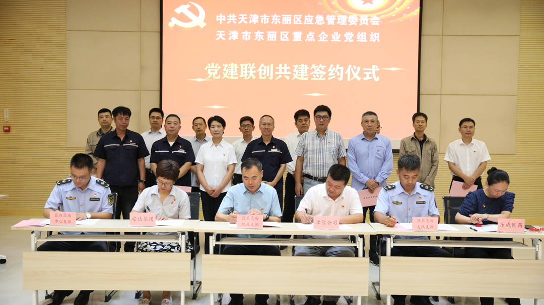 安達集團第一黨支部與東麗區應急管理事務(wù)中心黨支部成功簽訂聯(lián)創(chuàng )共建協(xié)議書(shū)。