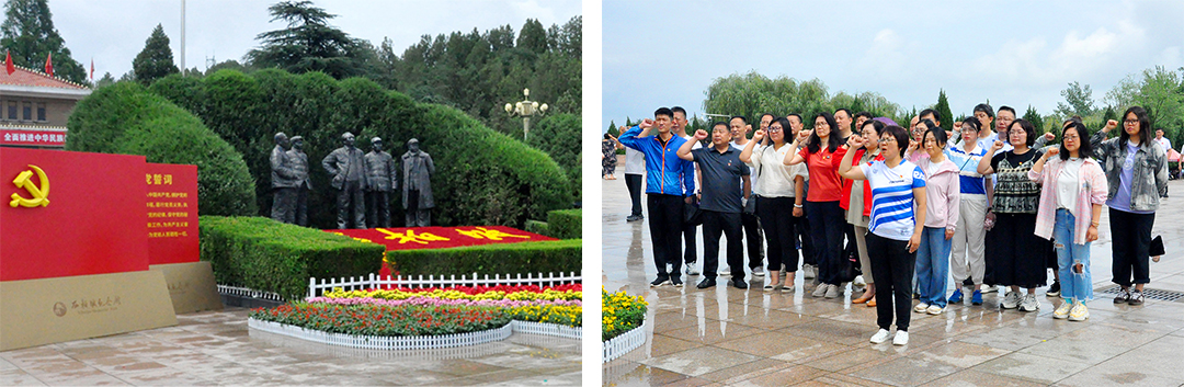 參觀(guān)結束后,全體人員懷著(zhù)崇敬而莊重的心情,齊聚西柏坡紀念館門(mén)前。大家整齊列隊,高舉右拳,面向鮮紅的黨旗重溫入黨誓詞:我志愿加入中國共產(chǎn)黨,擁護黨的綱領(lǐng),遵守黨的章程,履行黨員義務(wù),執行黨的決定,······鏗鏘有力的誓言響徹廣場(chǎng),激蕩在每個(gè)人心中,字字句句彰顯著(zhù)安達集團黨員及積極分子們對黨的無(wú)限忠誠與為共產(chǎn)主義事業(yè)奮斗的堅定決心。
