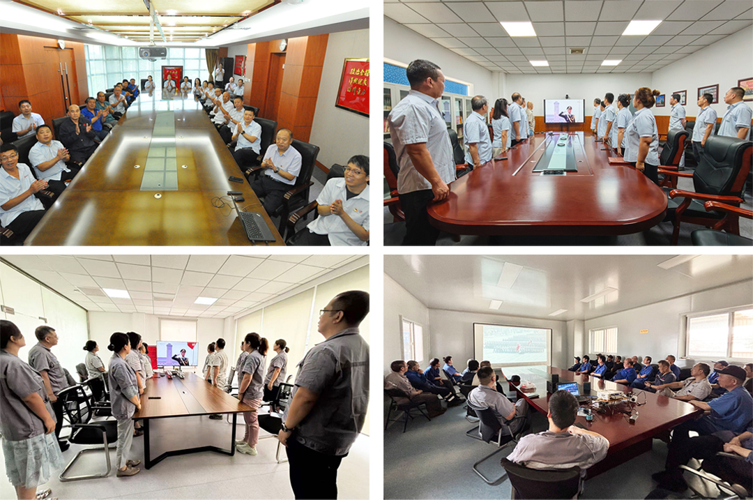 崔洪金出席閱兵式的同時(shí),安達集團組織各部門(mén)各分公司人員在各自公司所在地觀(guān)看閱兵式現場(chǎng)直播。集團總部及各分公司的會(huì )議室、辦公區域等場(chǎng)所,都聚集了眾多員工,大家懷著(zhù)激動(dòng)的心情,共同觀(guān)看閱兵式的精彩畫(huà)面。當整齊的方陣、先進(jìn)的武器裝備依次通過(guò)天安門(mén)廣場(chǎng)時(shí),全體人員心潮澎湃,現場(chǎng)不時(shí)響起熱烈的掌聲。