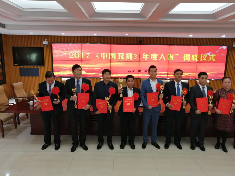 中國愛(ài)國擁軍促進(jìn)會(huì )會(huì )長(cháng)羅平飛和廣東省退役軍人事務(wù)廳黨組成員、副廳長(cháng)饒美奕,江蘇省退役軍人事務(wù)廳副廳長(cháng)徐衛,珠海市委常委、珠海警備區司令員畢敦發(fā)大校等,為2017《中國雙擁》年度人物頒發(fā)證書(shū)和紀念杯,并集體合影。各省、市、區雙擁辦負責同志出席揭曉?xún)x式。